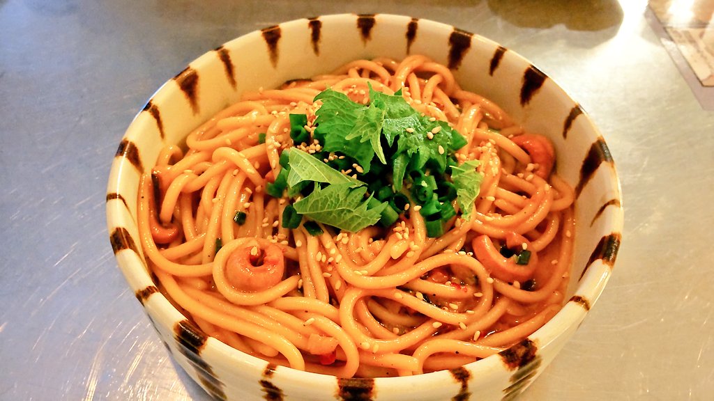 あ、今日行った個展、人間レストランというお店だったけど、塩辛パスタ美味しかったなぁ。芸人やってる店員さんが作ってくれるよ。立地がど真ん中過ぎて18禁みたいな入り口だけども。 pic.twitter.com/rk06eJjjEd 2021-05-19 22:55:00