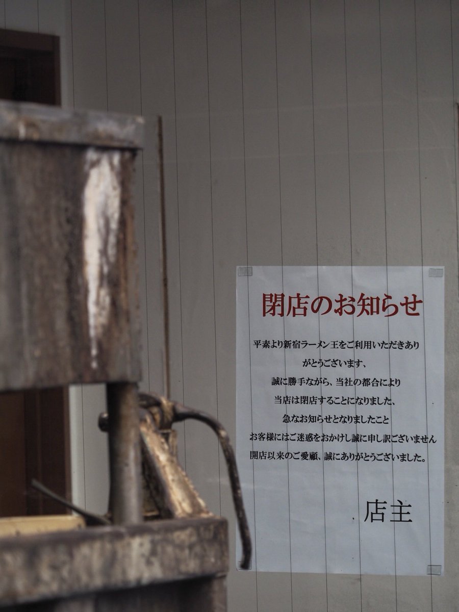 歌舞伎町桜通り「ラーメン王」閉店・・・