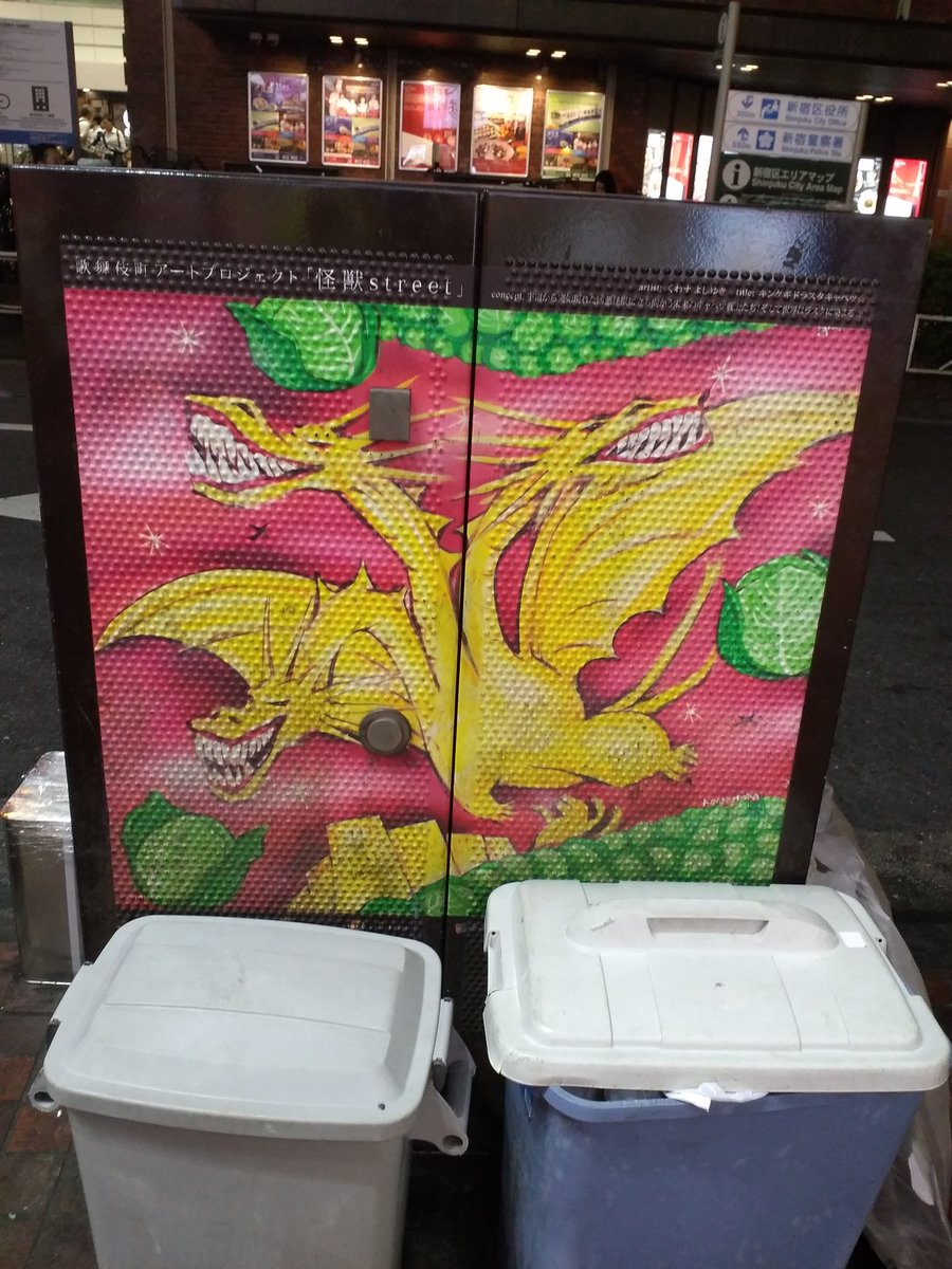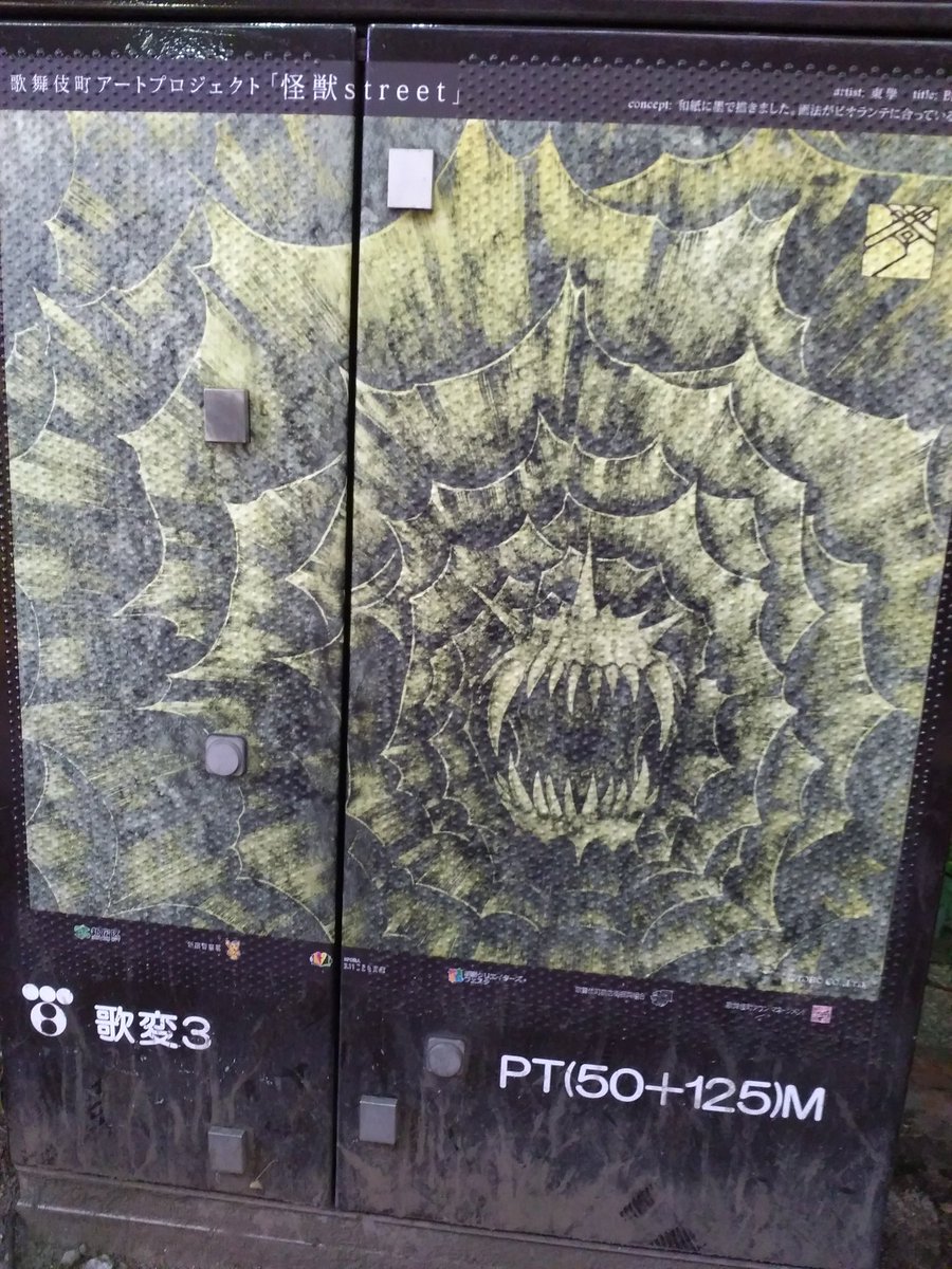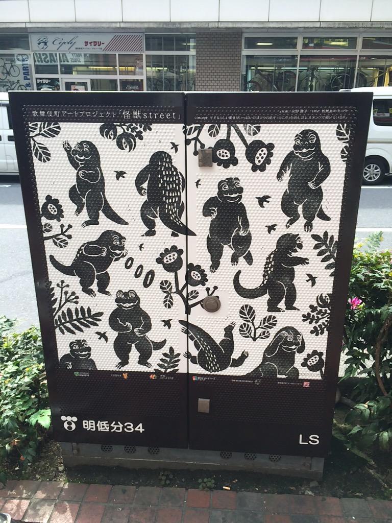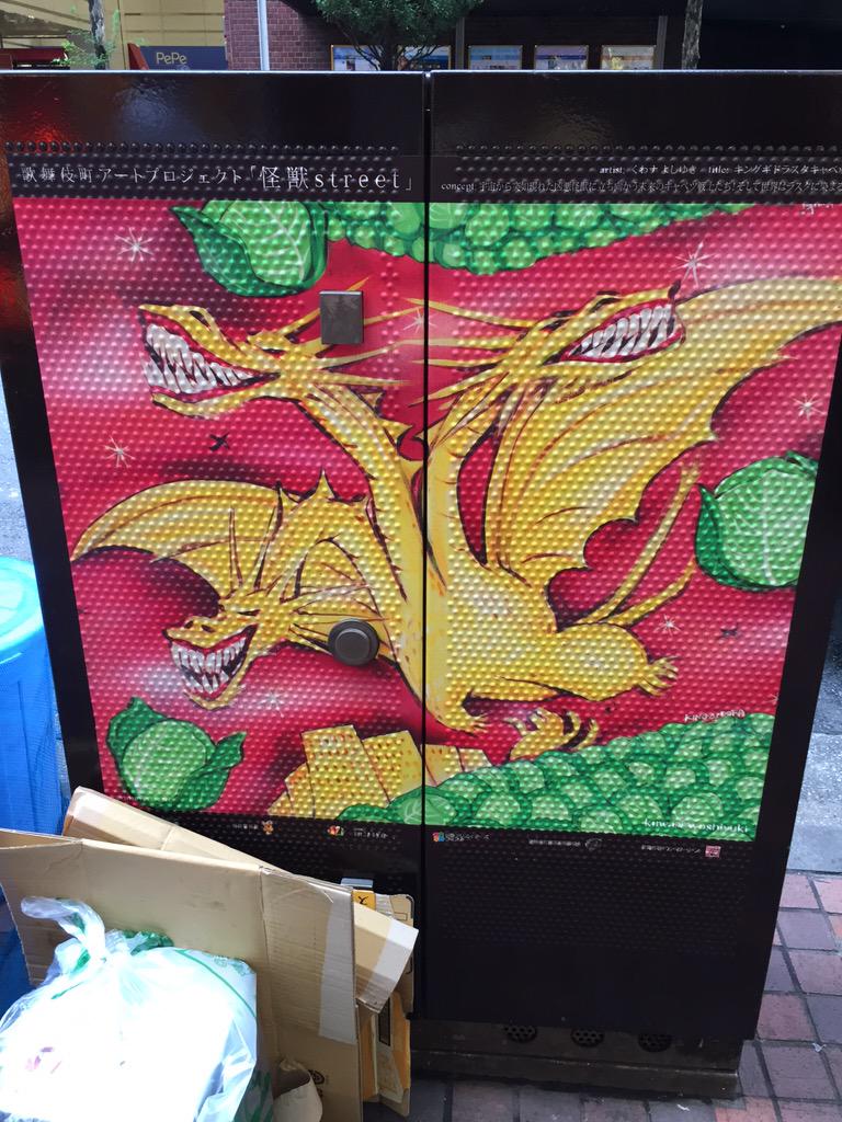 あまり知られていませんが、歌舞伎町の西武新宿駅前通りの路上変圧器にはゴジラや怪獣たちのアートが描かれています。 pic.twitter.com/8fJY02Wd8Q 2015-07-05 14:27:00
