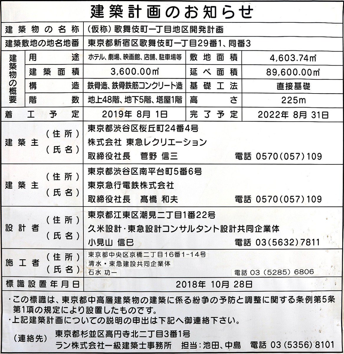 「東京急行電鉄株式会社」と「株式会社東急レクリエーション」は、「新宿TOKYU MILANO」跡地を中心とした敷地にて推進している「歌舞伎町一丁目地区開発計画(新宿TOKYU MILANO再開発計画)」新築工事を、本格着工しました。