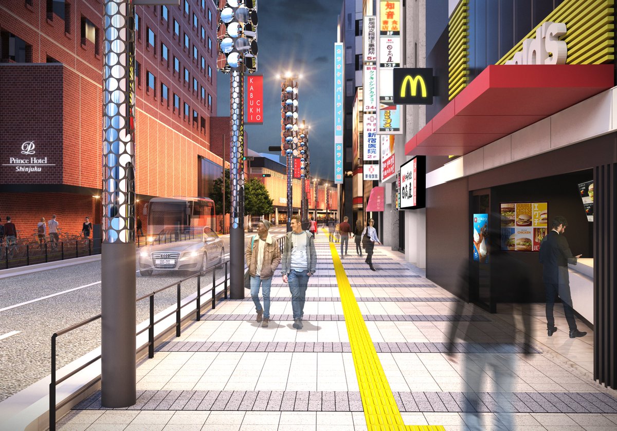また、バス乗降場の整備により歌舞伎町へのダイレクトなアクセスを可能とする空港連絡バスルートを形成するとともに、西武新宿駅前通りのリニューアルや広場に連続する歩行者ネットワークを形成し、まちの回遊性とにぎわいを創出する都市観光インフラの強化を図ります。