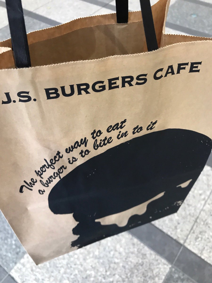 J.S. BURGERS CAFE新宿店の店頭でテイクアウトのハンバーガーを販売してたので購入したよ。ここのハンバーガー美味しいのよ pic.twitter.com/kj99J6hz4j 2020-04-07 12:18:00
