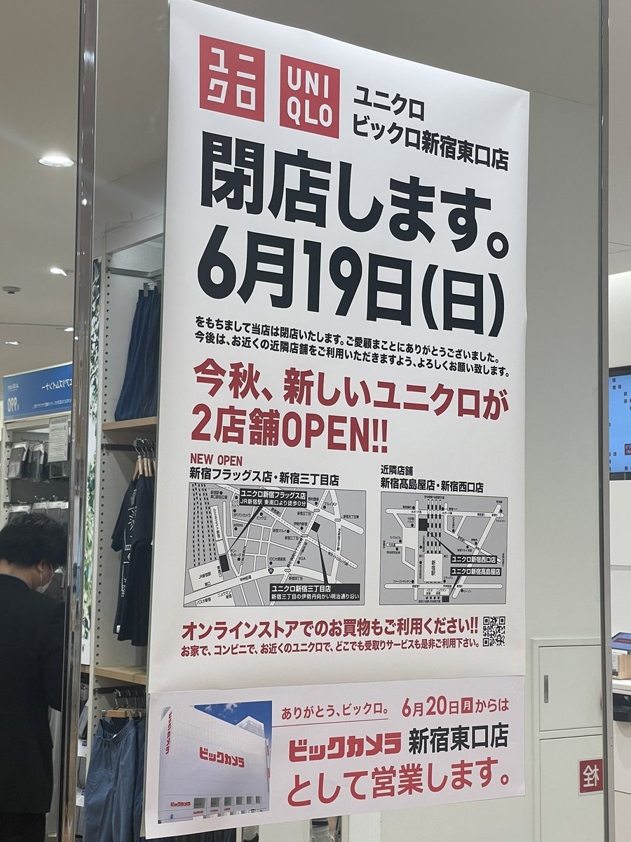 閉店に関する一次情報を探してみましたが、「株式会社ビックカメラ」「株式会社ファーストリテイリング」いずれも、この件に関して一般userが確認できるようなニュースリリースは公開していません。