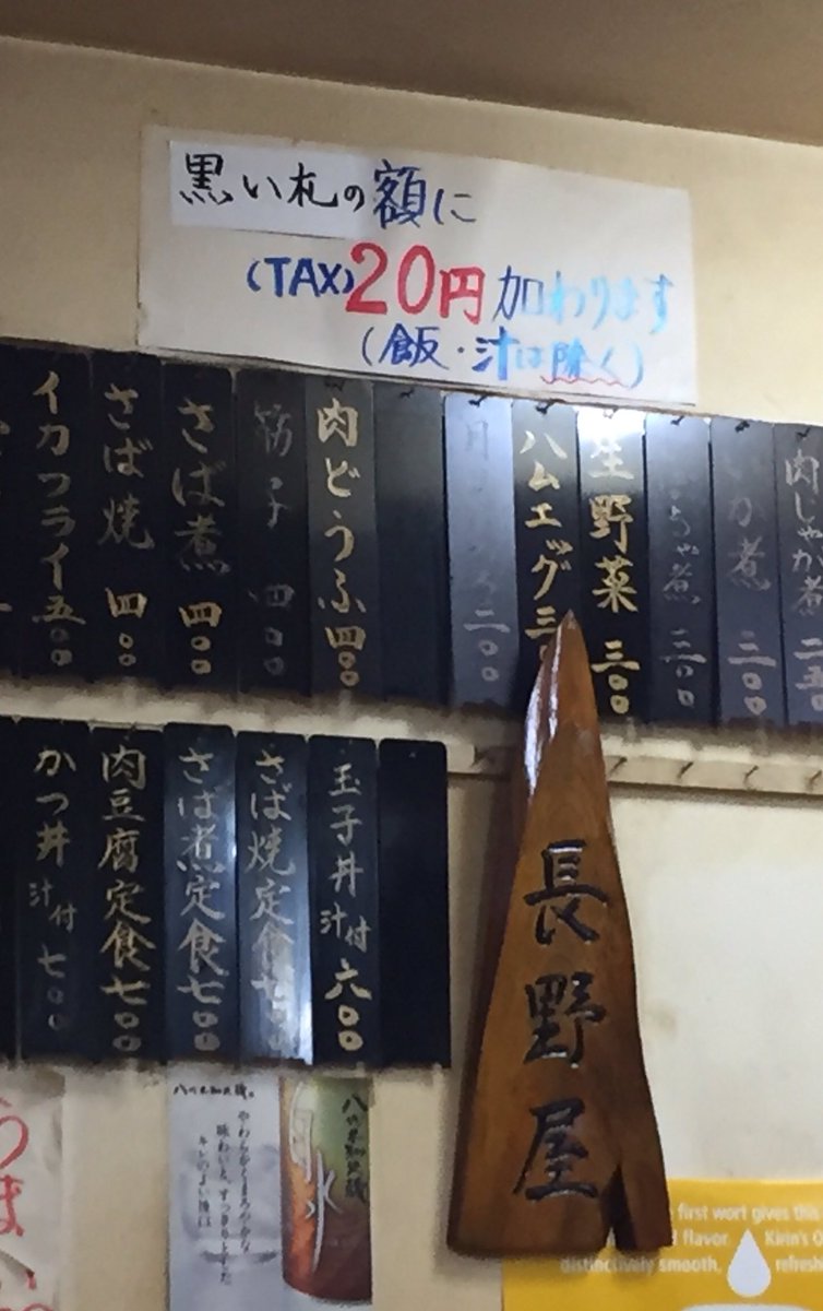 新宿南口の東側目の前にある食堂「長野屋」。消費税が一律20円って大雑把過ぎwww pic.twitter.com/0tAJUOnu1D 2017-08-22 19:14:00