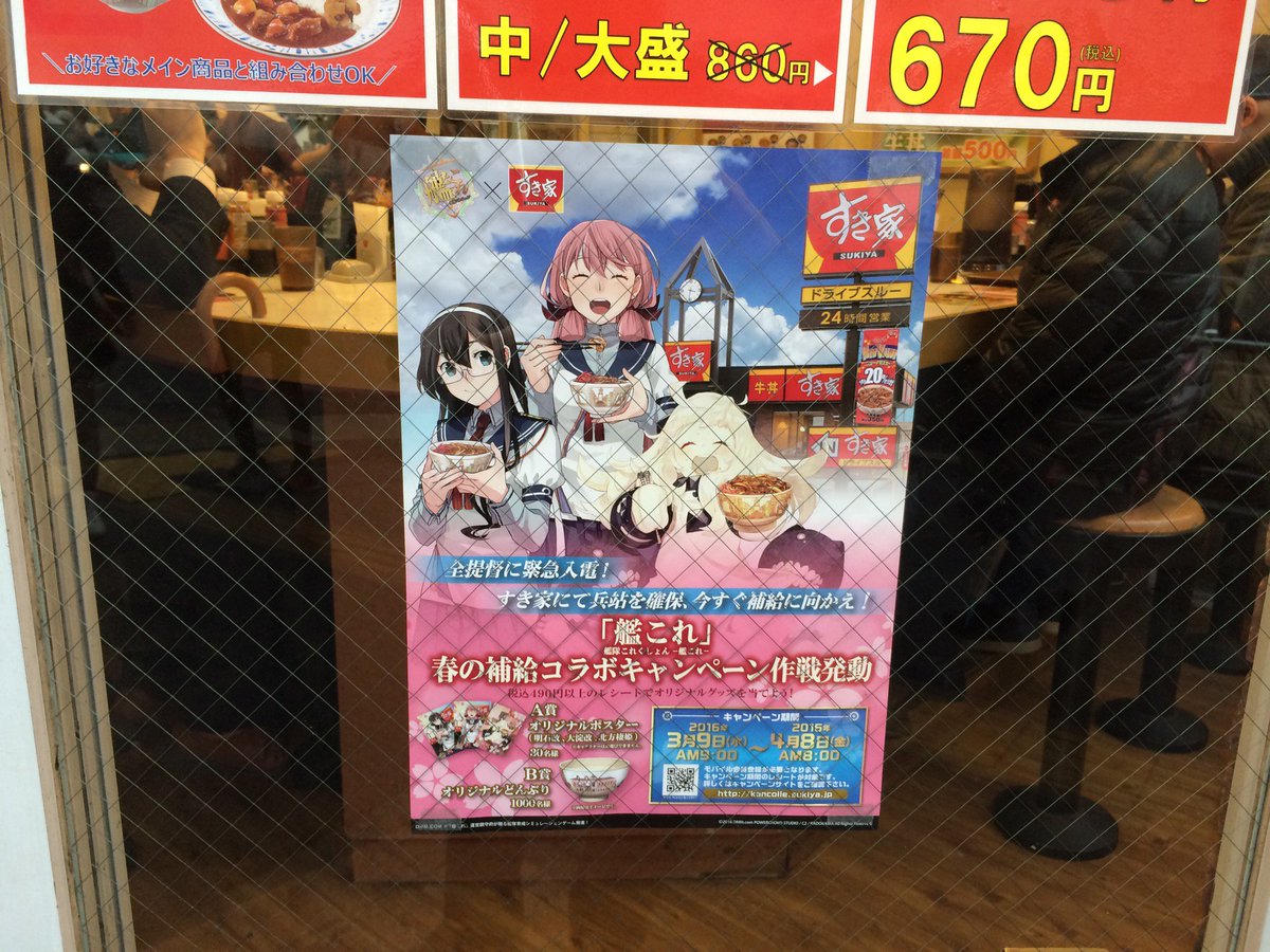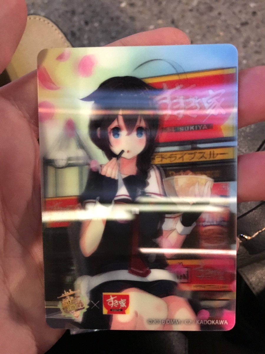 すき家新宿南店は二階席があるのであまり待たずに入れました。カードはしずま艦でした(*´▽`*)って事は雪風が出てくる予感かな? pic.twitter.com/DF3vCgJTAm 2016-03-09 13:59:00