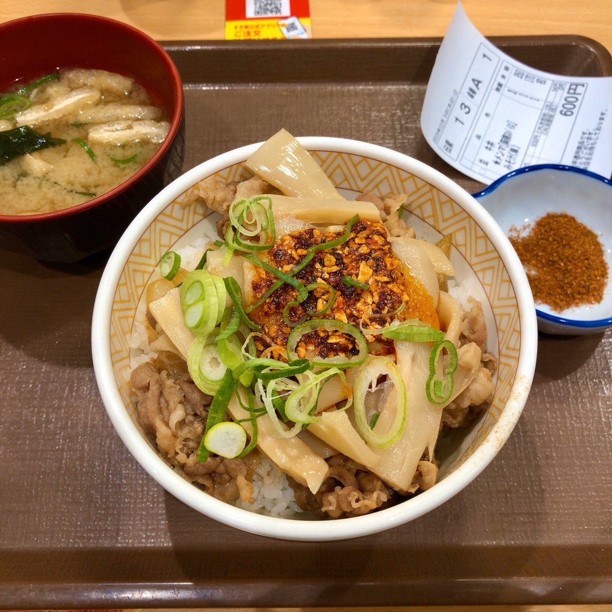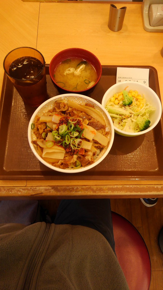 赤羽岩淵から新宿三丁目までメトロ線に乗ったあとは、新宿三丁目駅近くのすき家新宿南店で、メンマ牛丼大盛サラダセット780円を注文しました。食べるラー油が美味しいよ。 pic.twitter.com/ZpjhzKaLP1