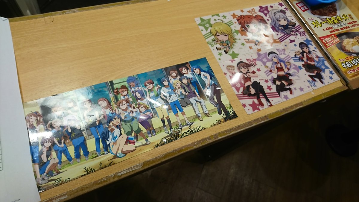 すき家の新宿南店(ブロマイド配布店)で、一応の確認で店員さんに「カードは貰えますか?」と聞いてたら、後ろから二の腕をツンツンされて「知り合いか?」と思って振り向いたら、知らない女性から「カードいります?」と、ブロマイドを頂いてしまった。ありがてぇ、ありがてぇ。 pic.twitter.com/R60cLfinXl 2017-10-17 22:13:00