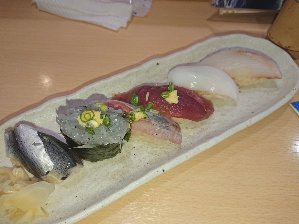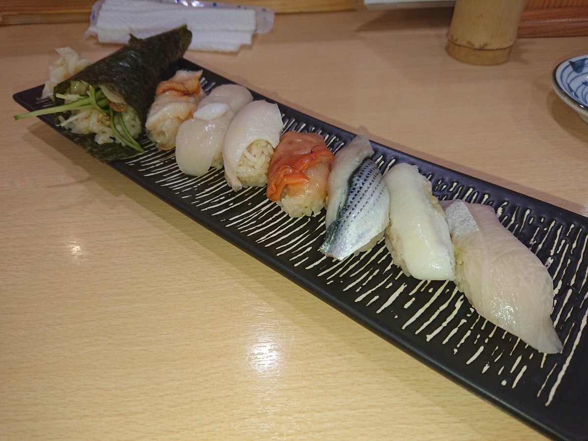 かんぱち、えんがわ、こはだ、赤貝、あわび、ほたて、つぶ貝、ひもきゅう、ひらめ、すみいか、もちかつお、いわし、生しらす、新子🍣