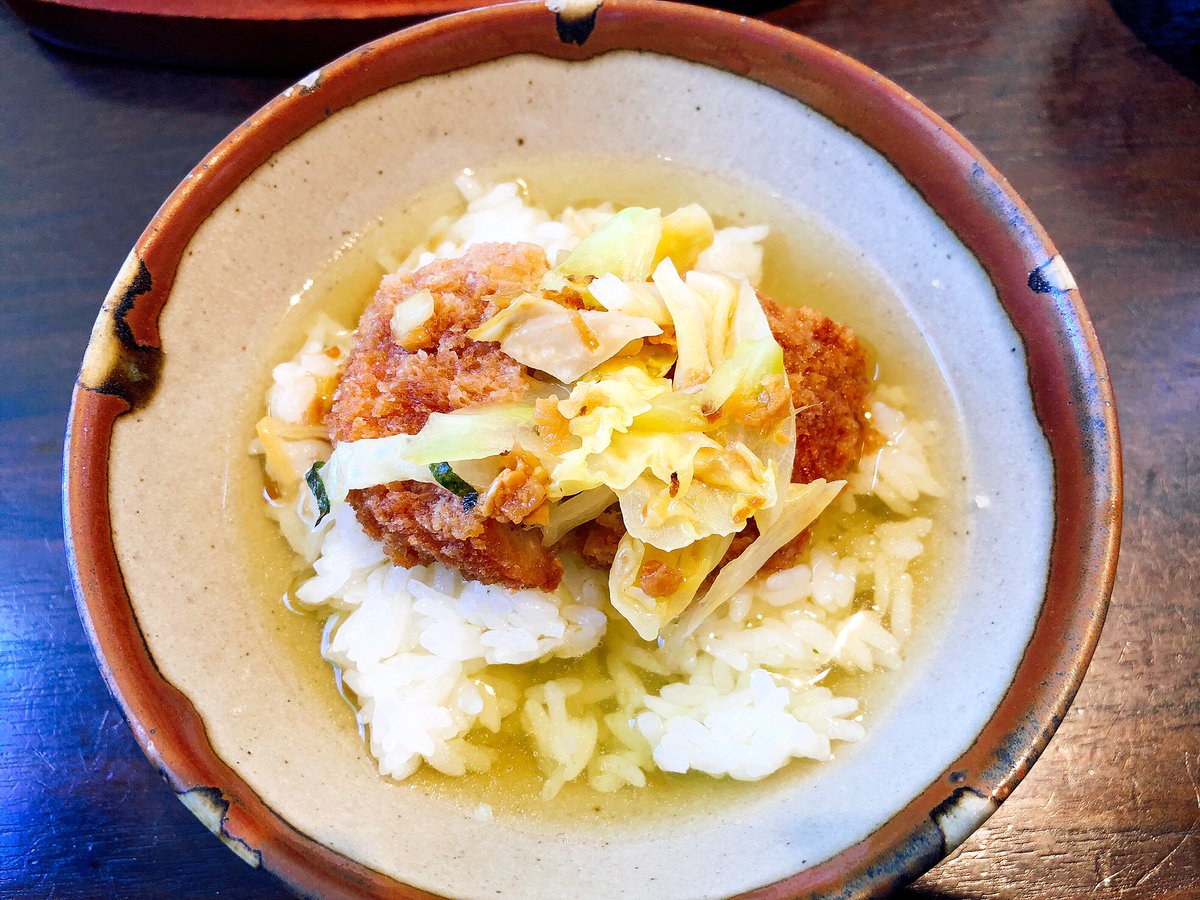 名物のとんかつ茶漬けを定番醤油でいただきました