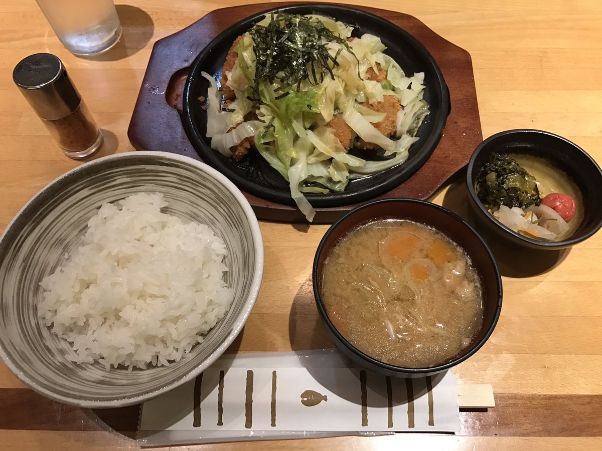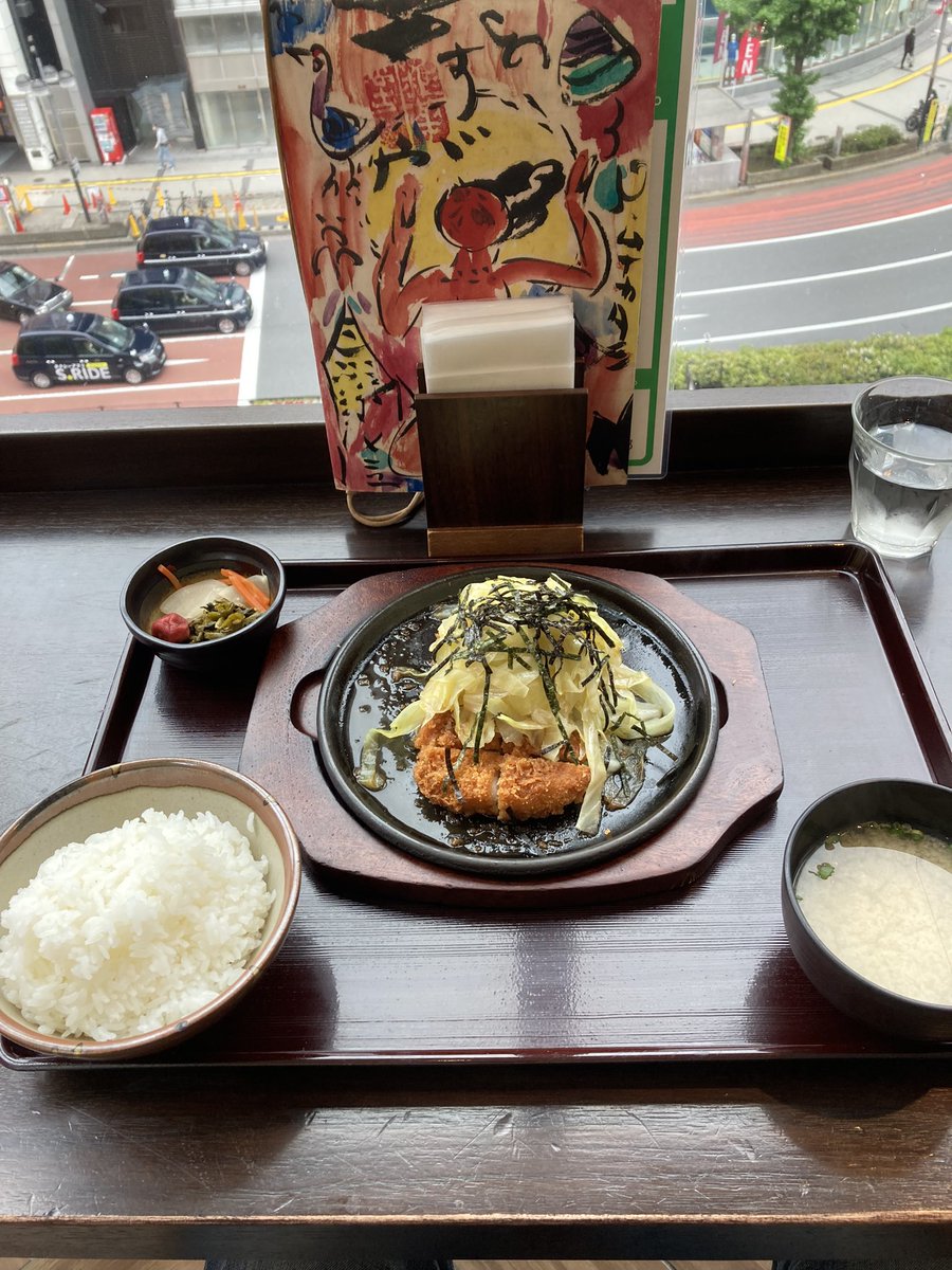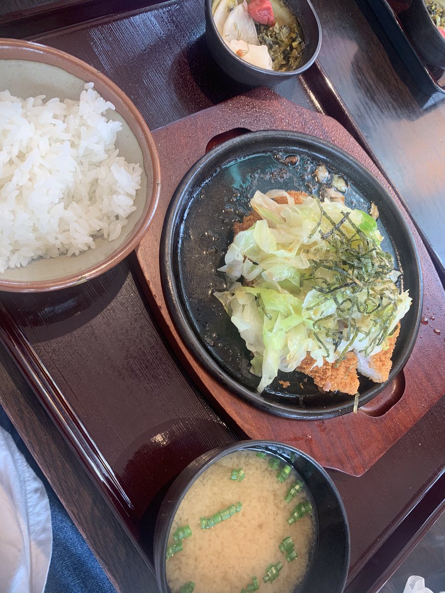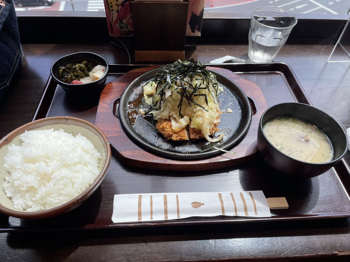 熱々の鉄板の上に醤油味で食べるとんかつはそのままでも美味しいが最後にお茶漬けでさっぱり食べれて2度うまい!最高!ご馳走様でした! pic.twitter.com/98YkmYm76I