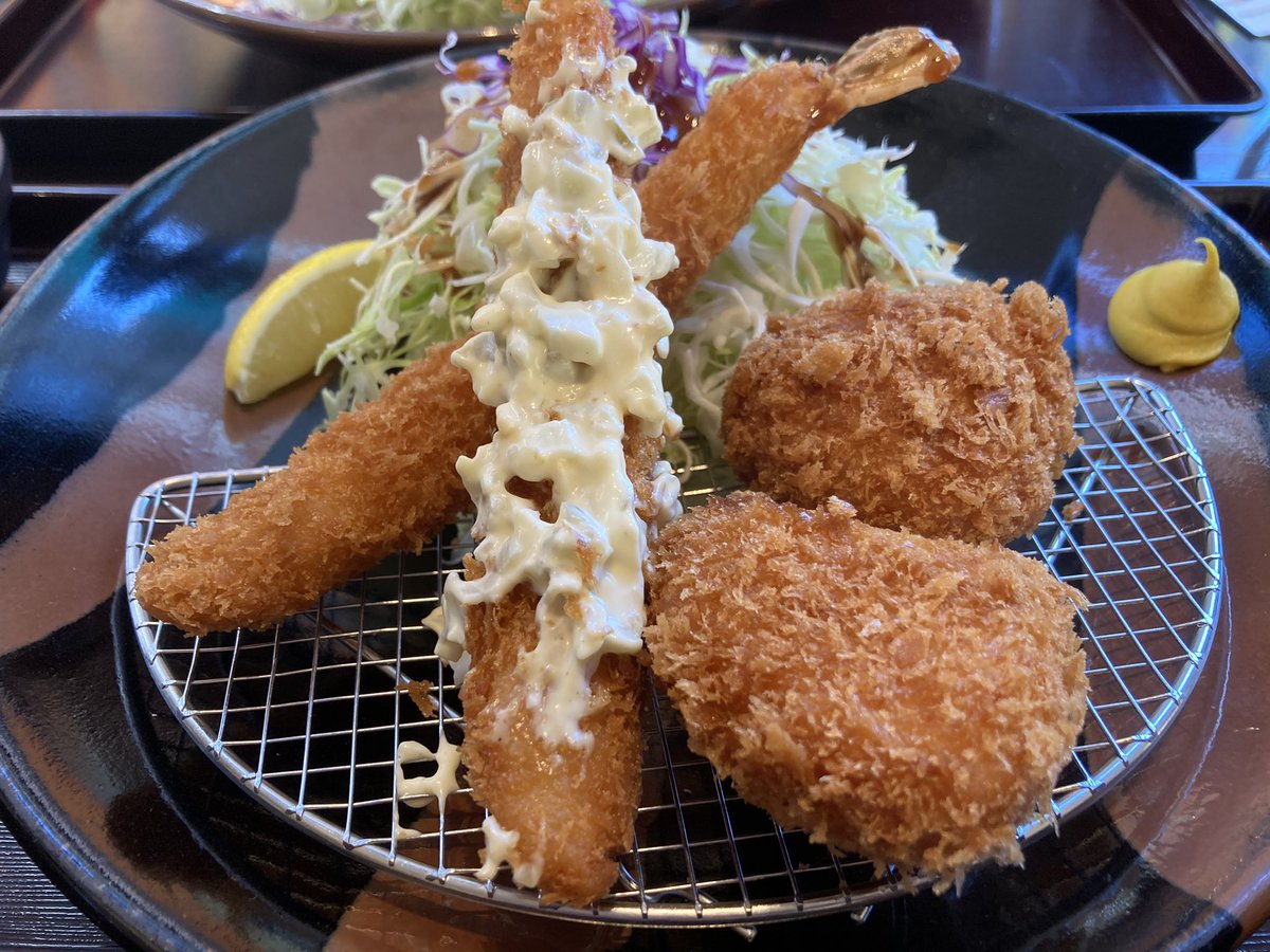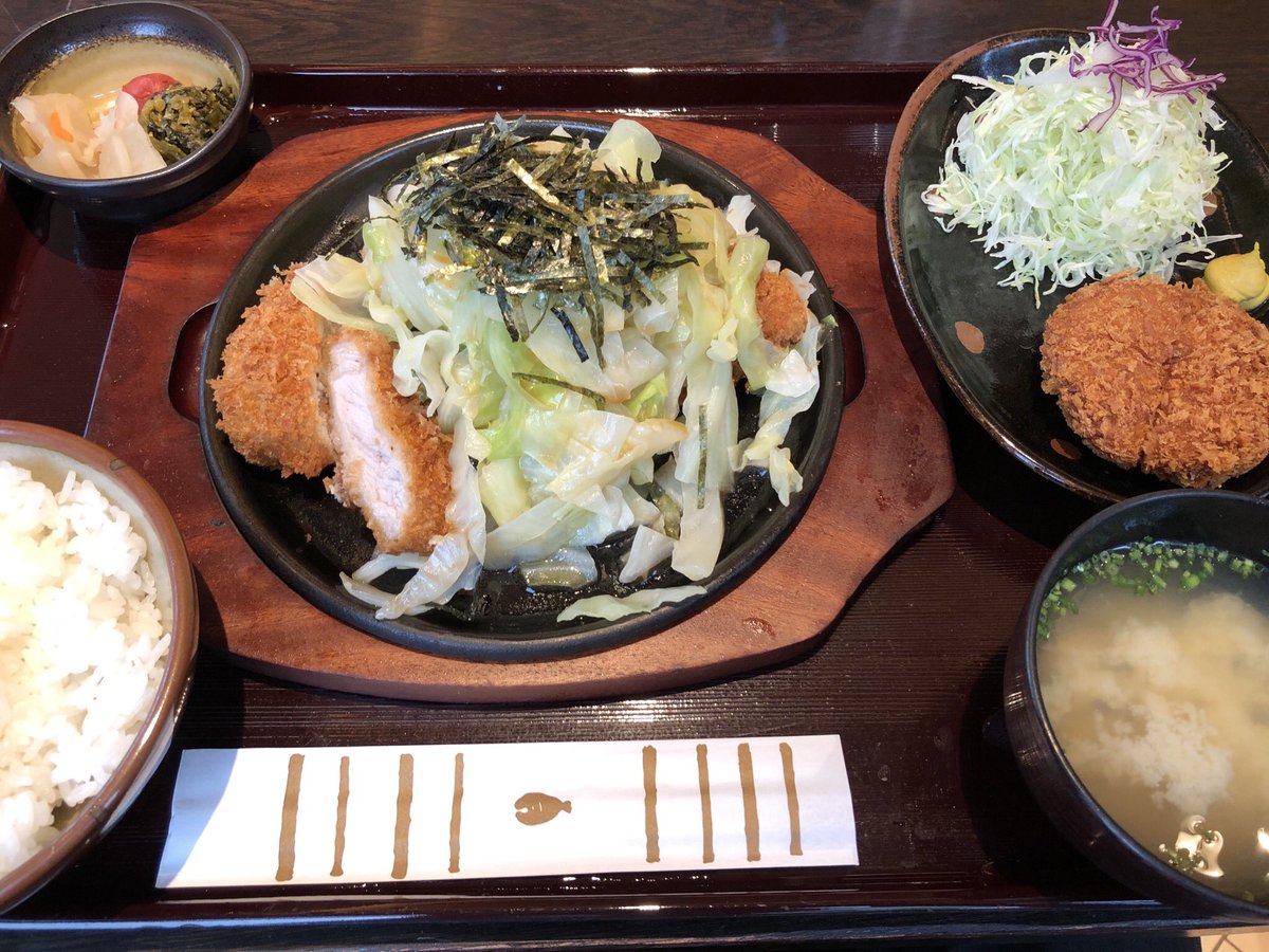 メンチカツ、チキンカツ、ロースカツをいっぺんに食べられる贅沢なお定食✨