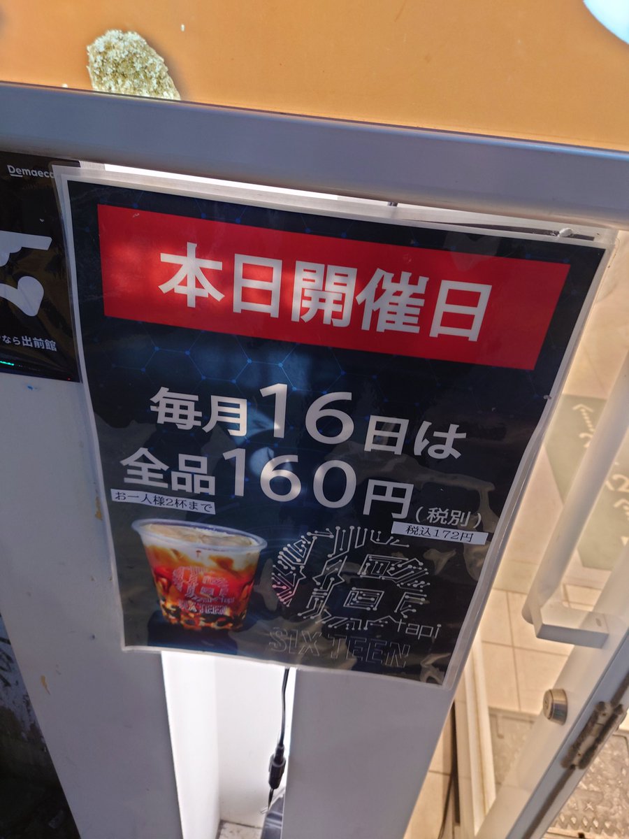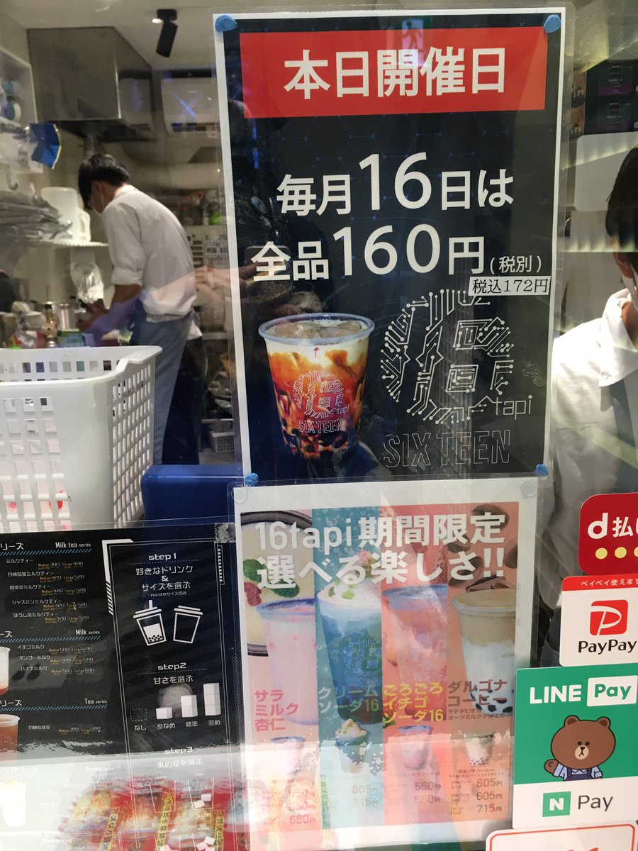 本日16日は16tapiのタピオカが160円で飲めるすごい日
