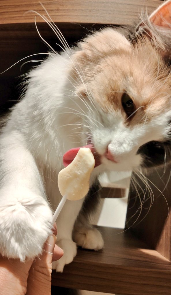 ①おやつがあるのを知っているので撮影にも付き合ってくれるネコチャン