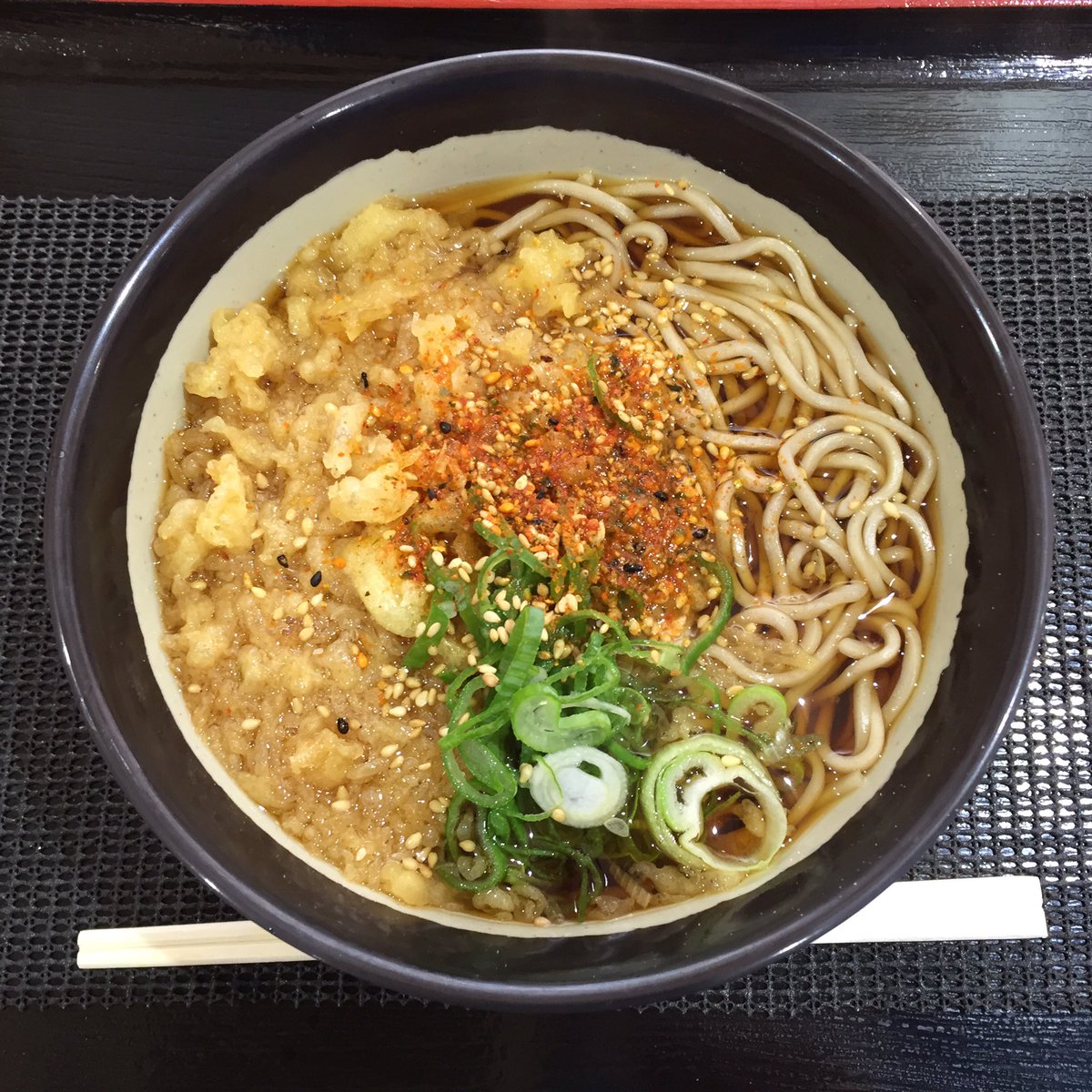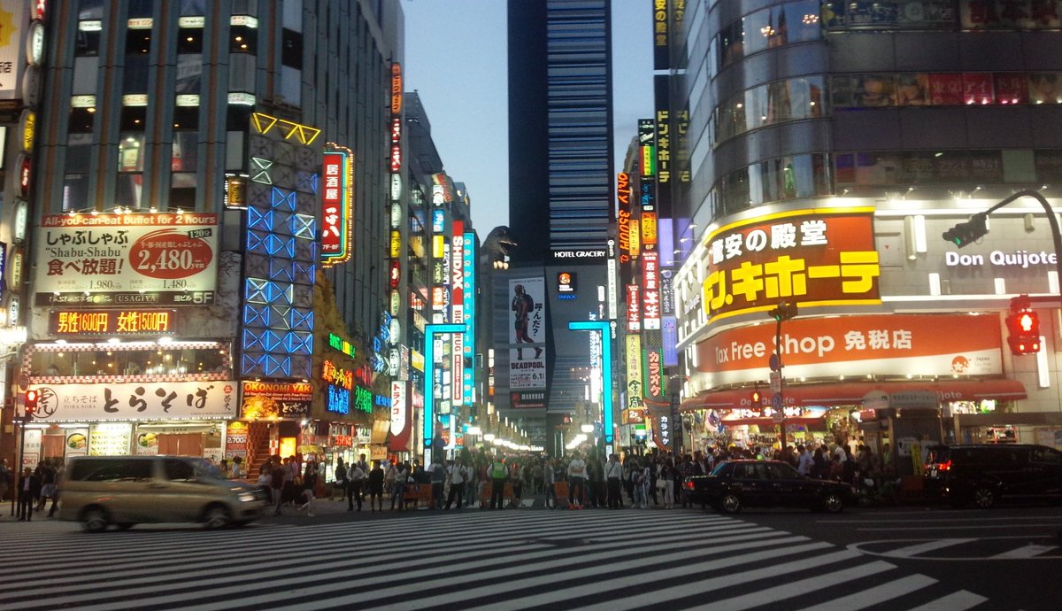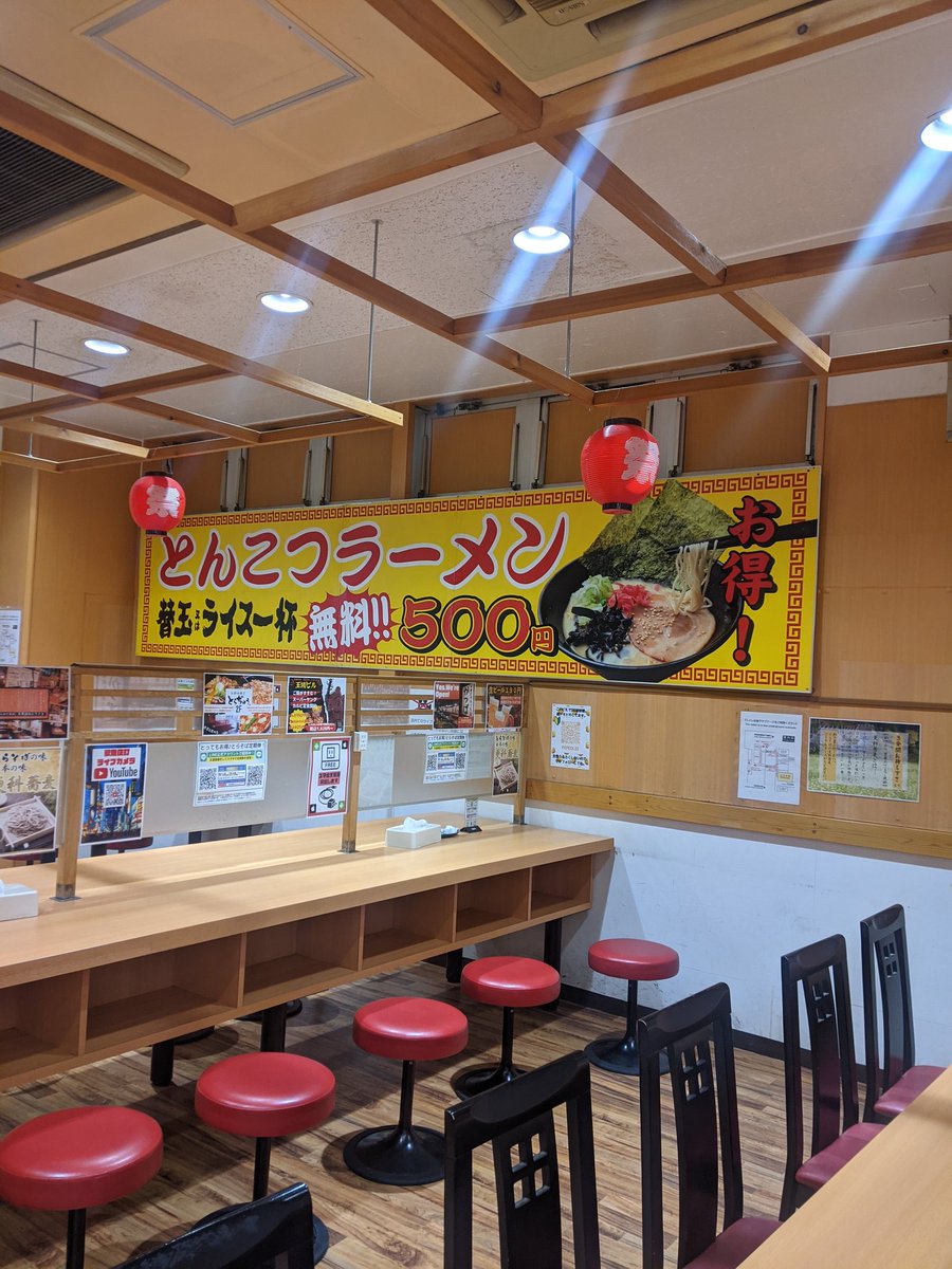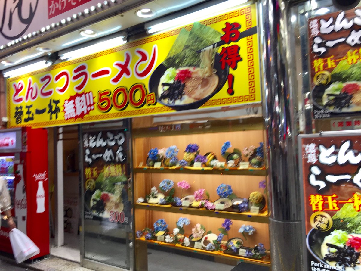 2016年11月14日14時25分。「歌舞伎町交差点」より、開店 7 か月後の「とらそば」を撮影しました。入口上に掲示されている「とらそば かけそば 280 円」などと書かれた店舗案内も写っています。