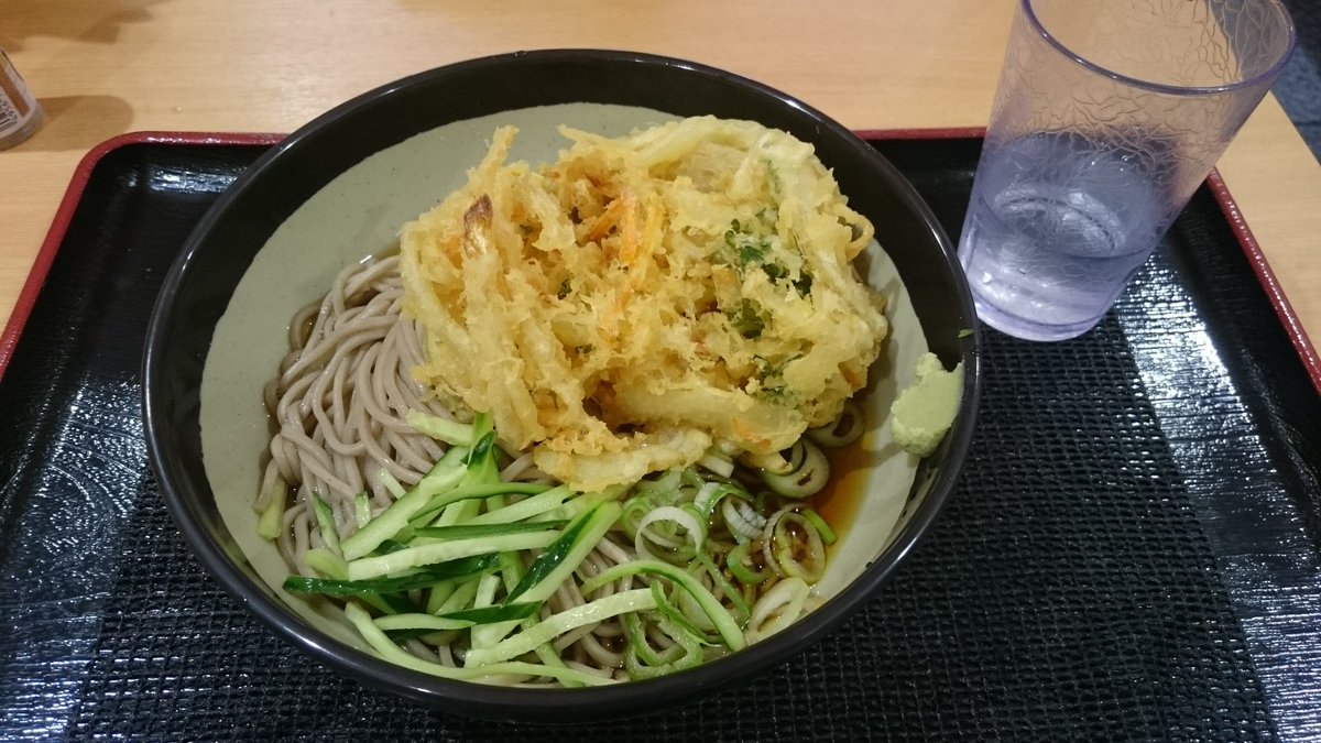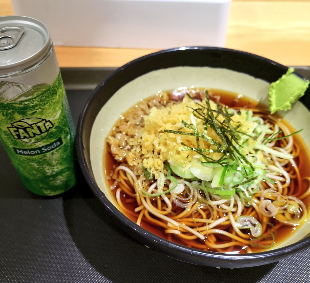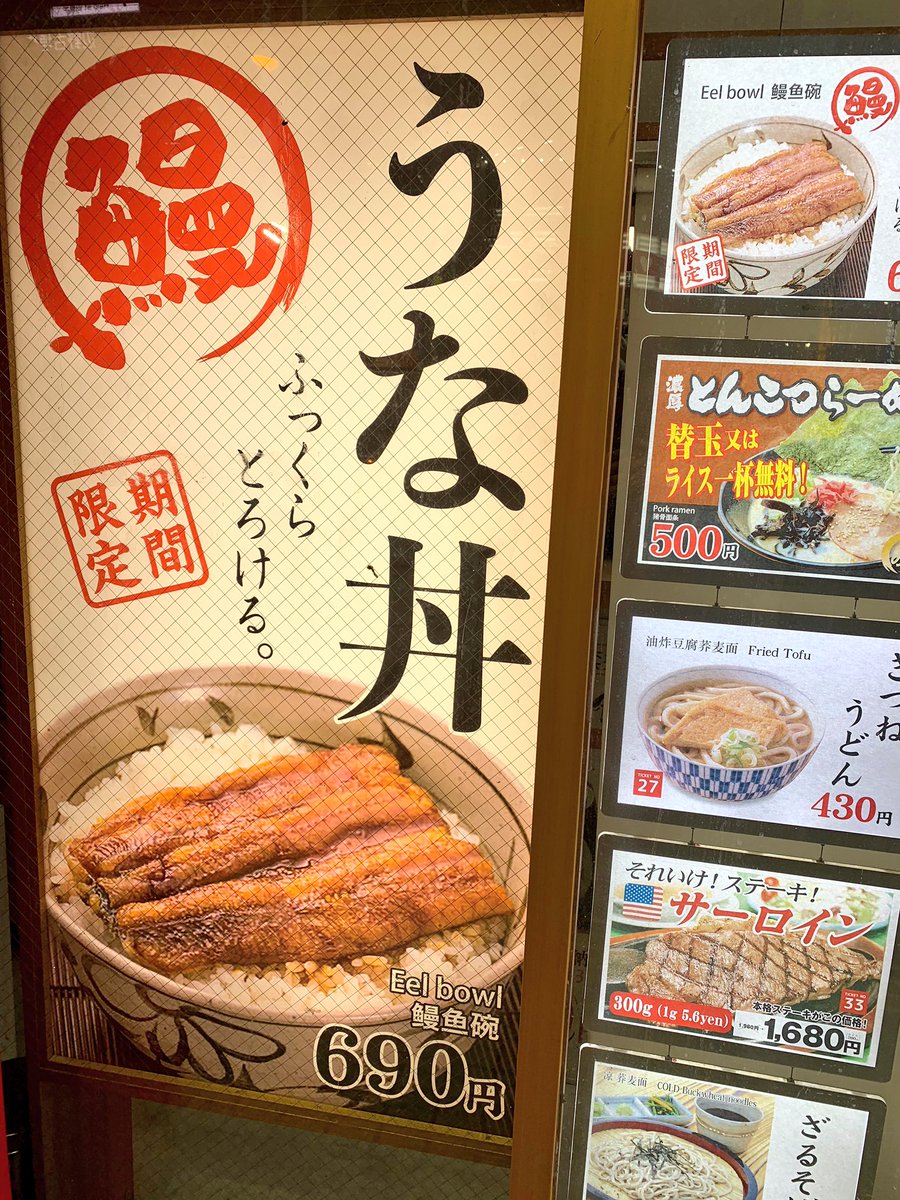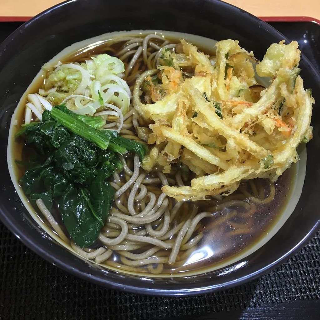 2018年7月3日16時17分。「歌舞伎町交差点」より「とらそば」を撮影しました。入口上に掲示されている「とらそば かけそば 280 円」などと書かれた店舗案内も写っています。 -