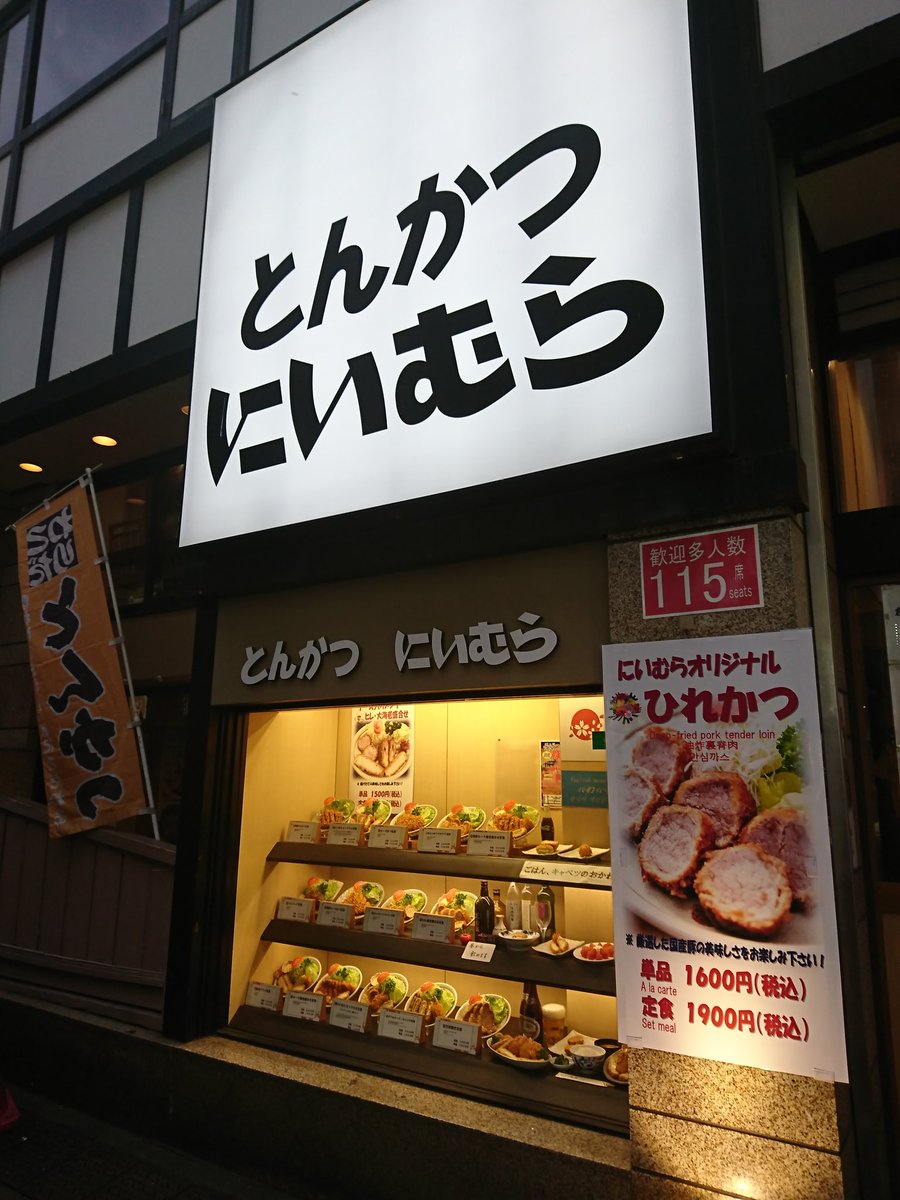 2015年6月7日15時37分。「歌舞伎町一番街」にあるとんかつ店「とんかつにいむら 新宿歌舞伎町本店」を撮影しました。右下には、赤色背景に白色文字で「115 席」などと書かれた掲示物も写っています。 -