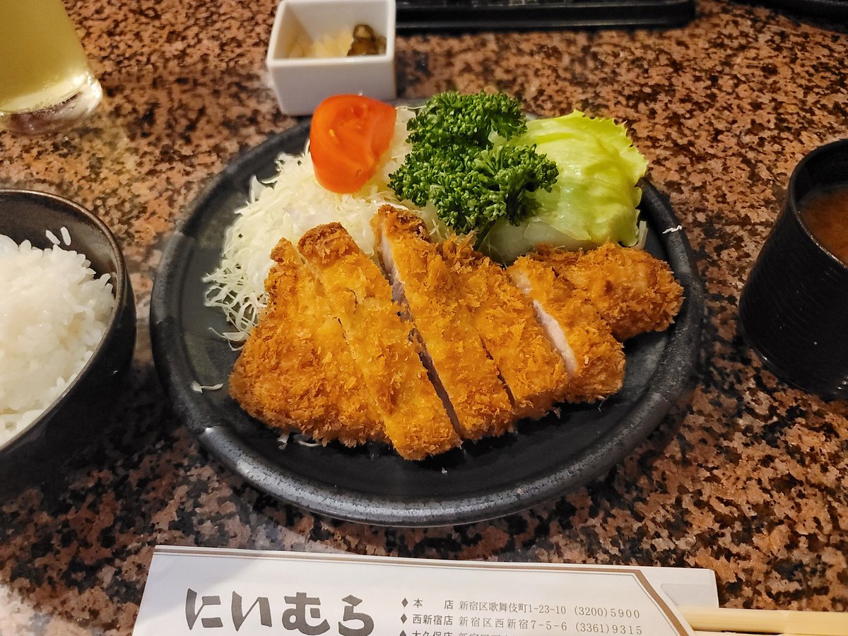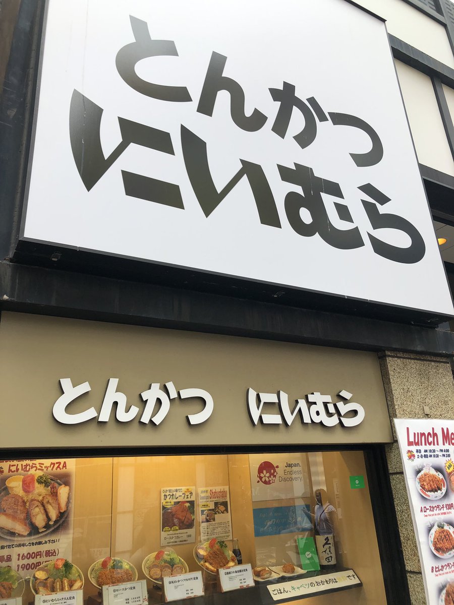 2016年4月18日14時38分。「歌舞伎町一番街」にあるとんかつ店「とんかつにいむら 新宿歌舞伎町本店」を撮影しました。左手前には、閉店したラーメン店「博多天神 一番街通り店」も写っています。 -