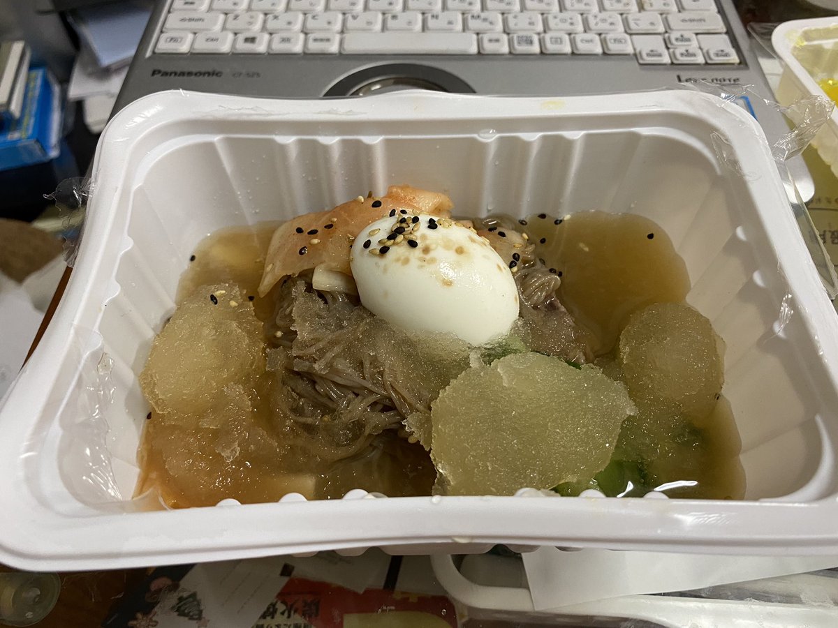たまーにある、冷たくて酸っぱくて喉越しの良い食べ物を欲する時期。貧血気味なのかな。そんな時は冷麺が最高♡家にちょうどキムチも買ってあったし。容器に趣が足りないけど、ここ最近で食べた冷麺では一番好きかも。 pic.twitter.com/VZmNTa2Im1