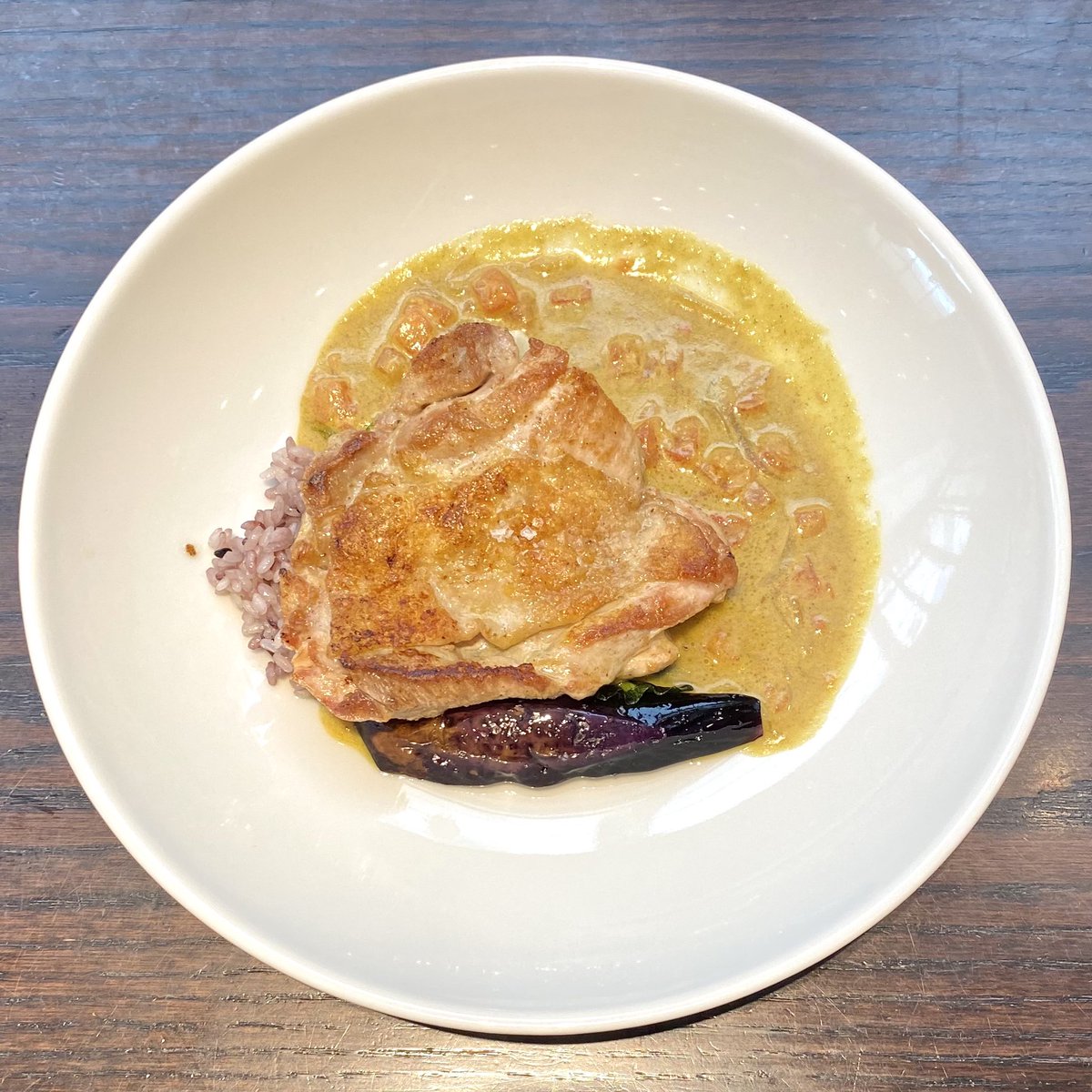 鶏肉にかかってたココナッツカレーがスパイシーで本格的だった! pic.twitter.com/p0Sd8vSB2R