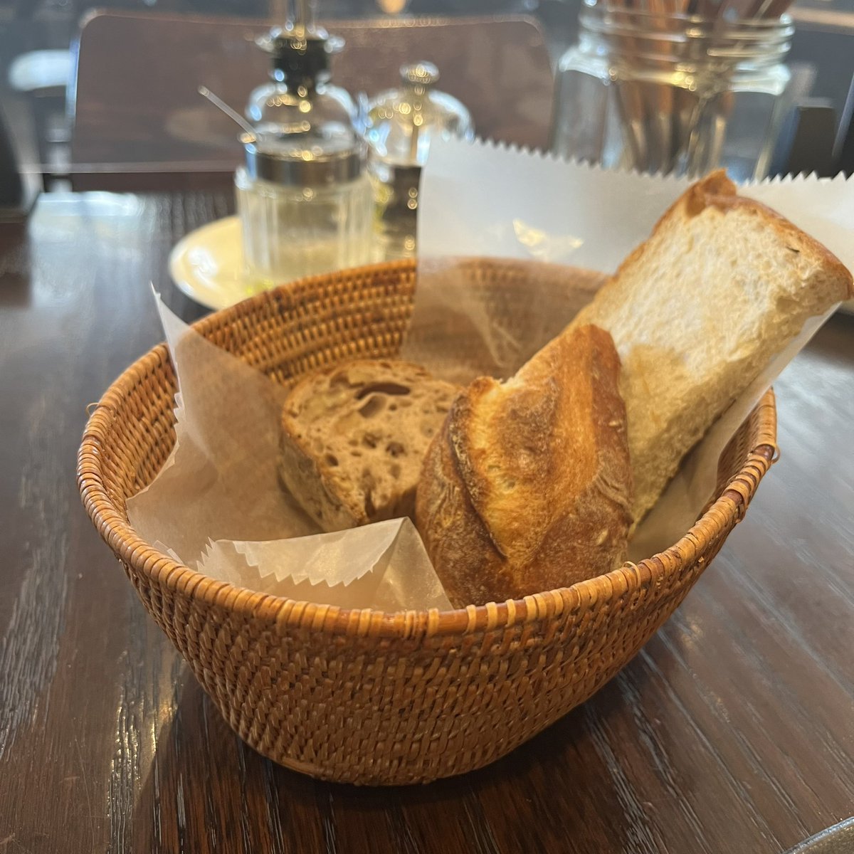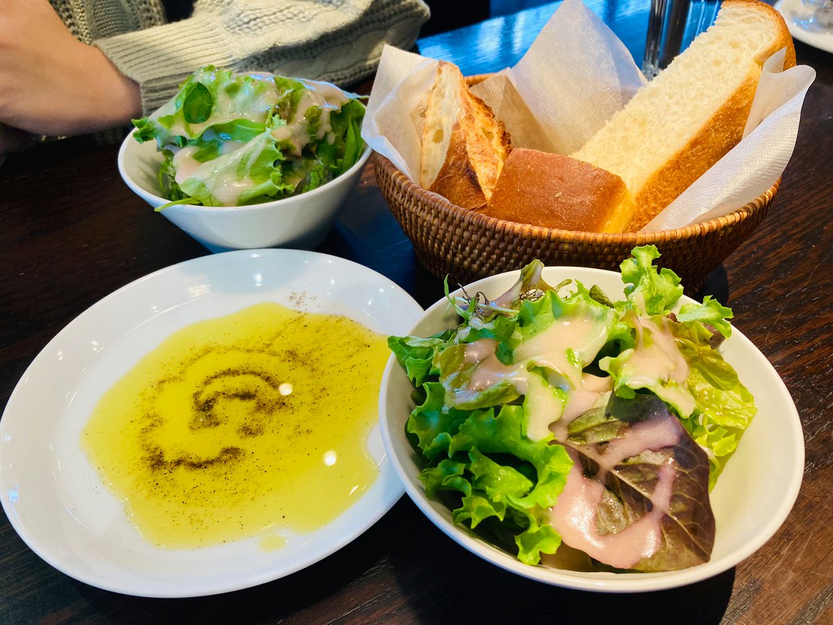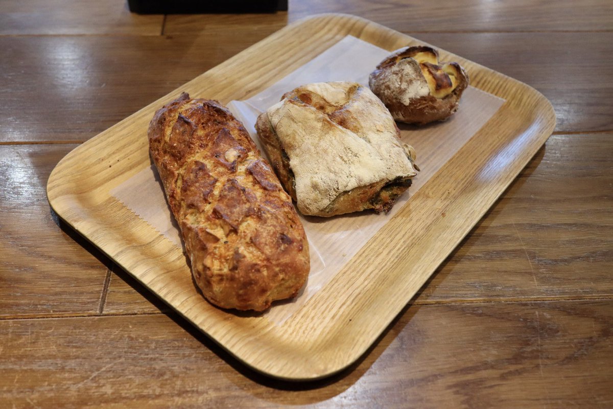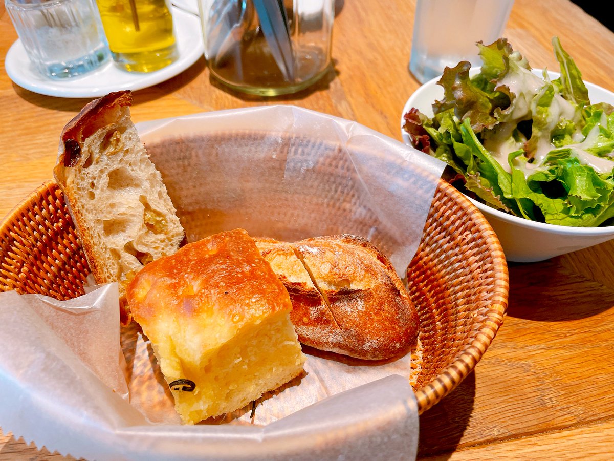 お料理の味(特にソース類!)もさることながら、パンがとにかくモチモチ&サクサクで美味しい。美味しすぎて買って帰りました。持ち帰りなら並ばないから気軽にまた行きたいな。 pic.twitter.com/4NozHDs7wn