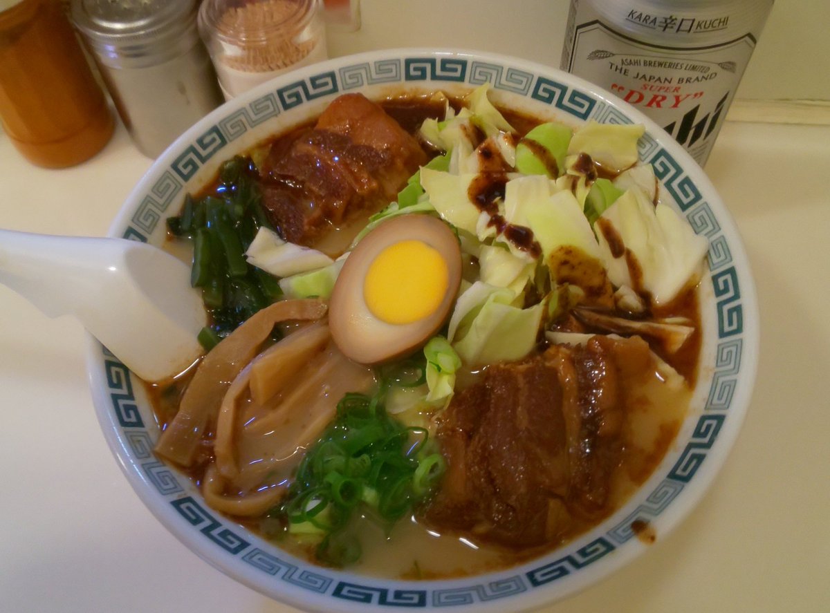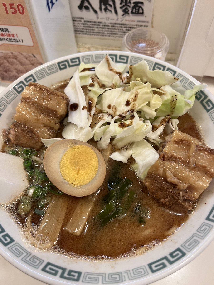 生キャベツと角煮で「太肉麺(たーろーめん)」。”クセ” があるんだが、それが癖になって、何ヶ月かおきに食べたくなる。”追いキャベツ” をして、スープをフルに堪能しても、胃はスッキリ❤️😄(桂花ラーメン 新宿 東口駅前店) pic.twitter.com/sPxyui2eFS 2022-02-23 16:06:00