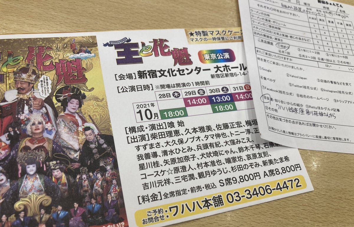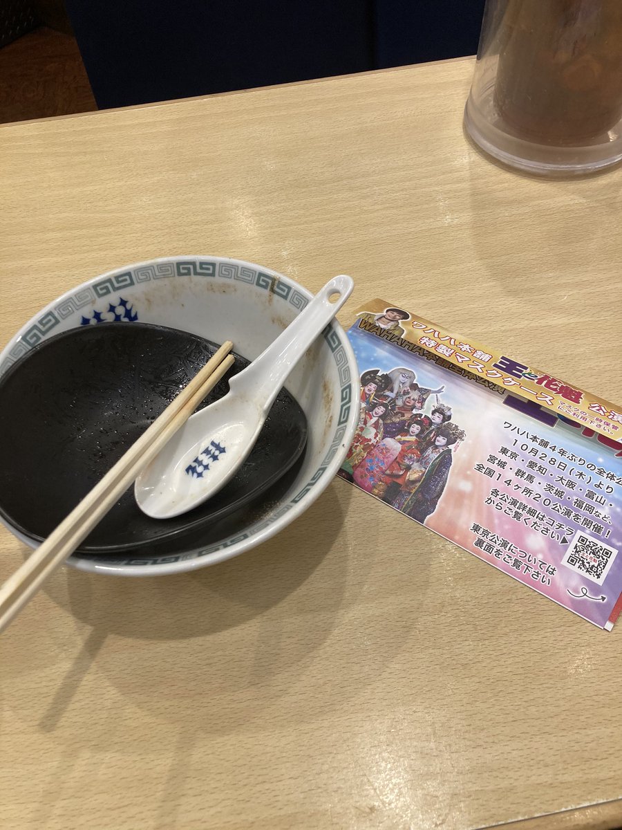ワハハ本舗全体公演スポンサー様(東京と熊本)の桂花ラーメン新宿ふぁんてん😋 pic.twitter.com/QHhnO8A1gN 2021-10-11 18:07:00
