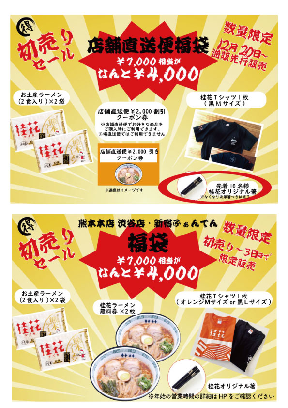 ※「店舗直送便福袋」と「熊本本店・渋谷・新宿ふぁんてん福袋」では内容が若干異なります。詳しくは添付画像をご確認ください