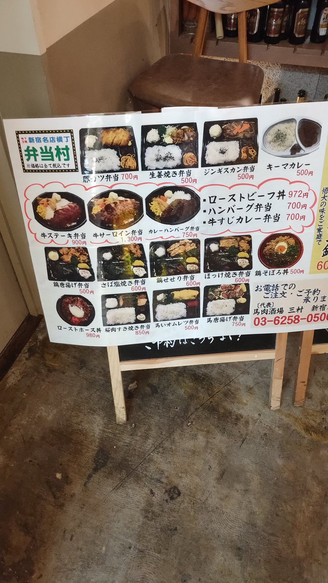 牛肉(「RUMP CAP」)、馬肉(「三村」)、羊肉(「悟大」)、鶏肉(「とり家ゑび寿」)、ホルモン(「やるきホルモン」)という専門店が軒を並べる「肉」をテーマとした『新宿名店横丁』
