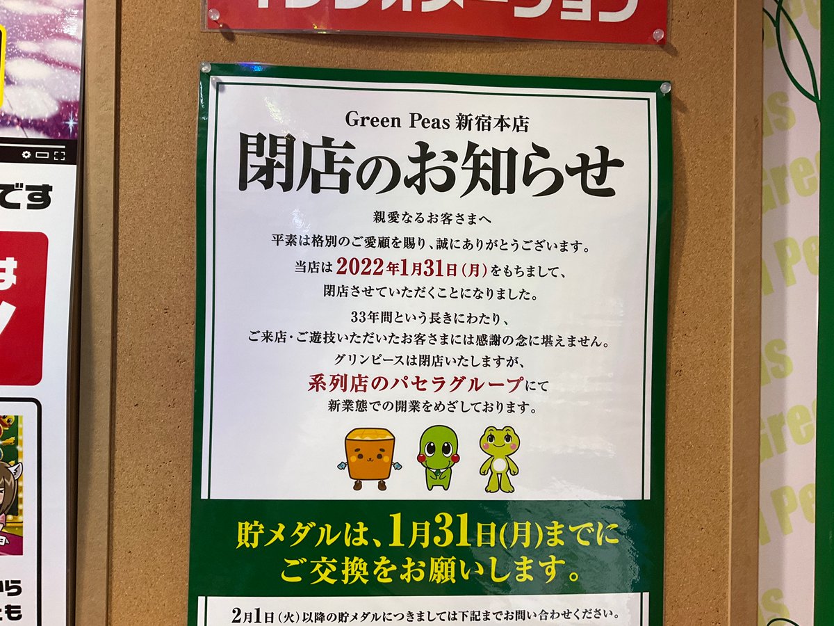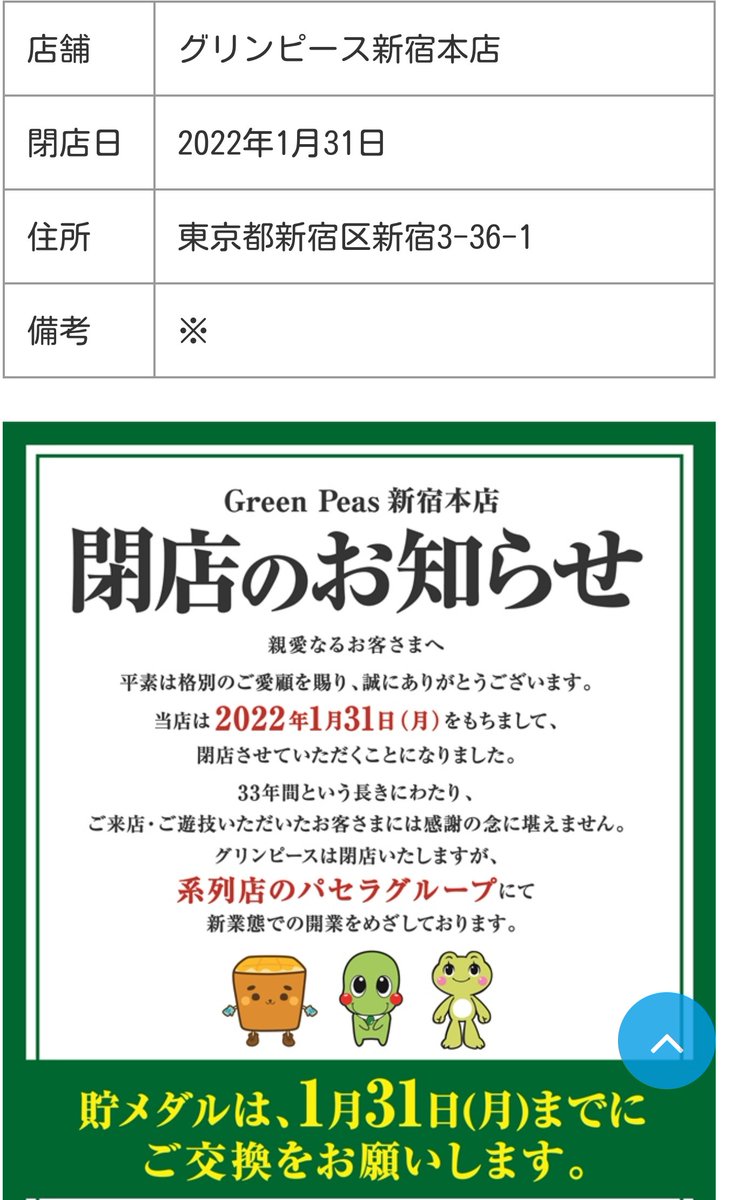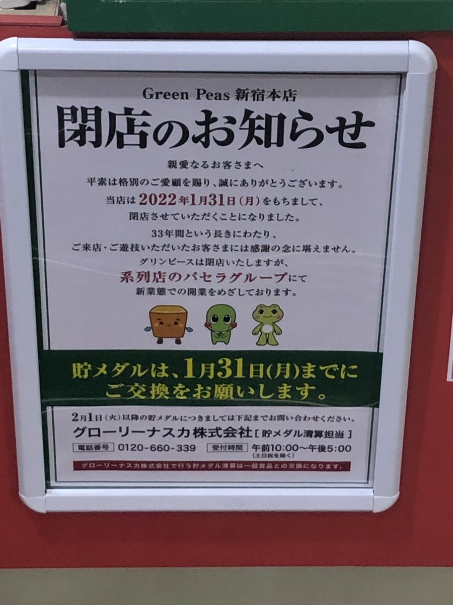 新宿駅東南口のグリンピース新宿本店が今月で閉店なのか…。上京して初めて新宿来た時に「このビル全部パチスロなの??」とスケールの大きさに驚いた記憶。あれから四半世紀、この業界は瀕死状態だねぇ。時代の移り変わりを眺めているんですな。 pic.twitter.com/FaeYf1SsNh 2022-01-19 18:03:00