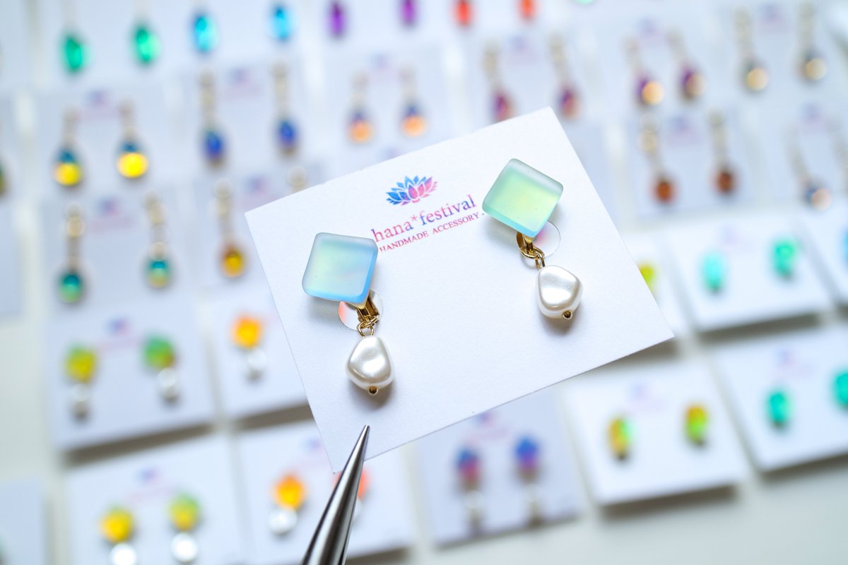 マットな質感で柔らかな印象をプラスしてくれる耳飾りです。身につけると優しく光を反射し、繊細な煌めきを放ちます。